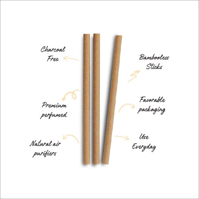 In a world where industrialization and pollution has permeated every facet of our lives, finding simple and soulful solutions that harmonize with nature can feel like a breath of fresh air. Imagine a scenario where each morning as you light a Dhoop stick, you are not only enveloping your space in a serene embrace of fragrance of pure sandalwood, Gau panchgavya and essential oils of natural herbs; but you are also contributing to a sustainable and eco-friendly practice. Welcome to the enchanting world of “BAMBOO LESS CHANDAN DHOOP STICKS by SURBHIKA”—a pioneering product that redefines our relationship with tradition and the environment. This is more than just incense; it is a conscious choice that resonates deeply with our need for spiritual and ecological balance.