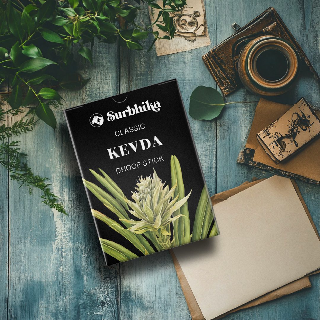 Kevda Dhoop sticks, a charcoal free, lung friendly, bamboo less safe product available in 55gm, 120gm a product from Surbhika’s Classic Series.
